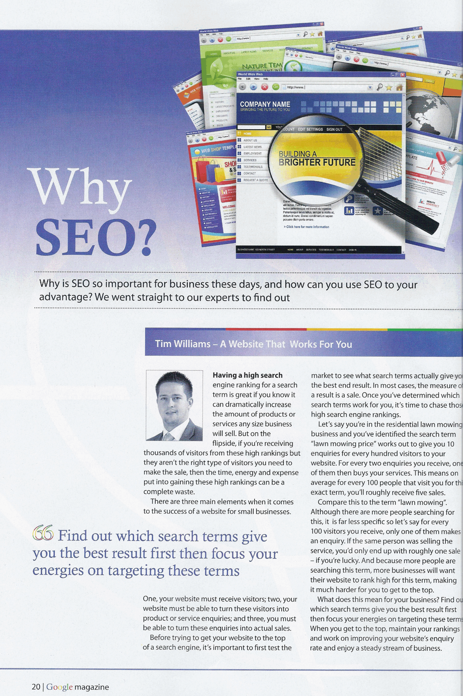 Featured advice on SEO (Search Engine Optimisation) in Google Magazine.